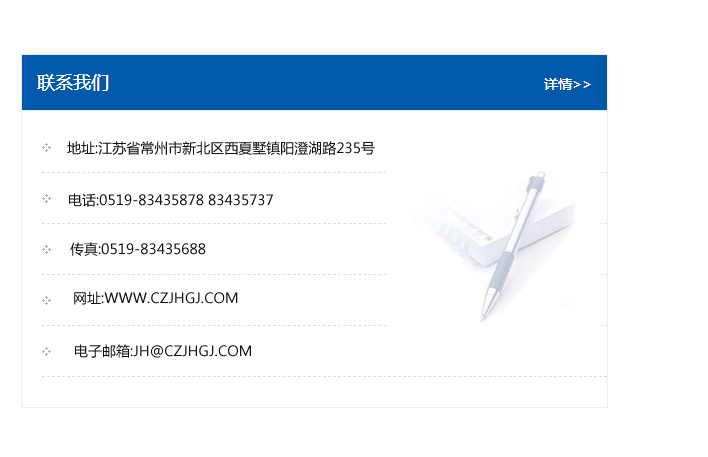 地址:常州市新北區友邦商務大廈1幢16、17層  電話:0519-85101652  傳真:0519-85112595  郵編:213022  網址:www_cz-jiayue_cn.changxiang168.com  郵箱:xiajifengaa@163.com